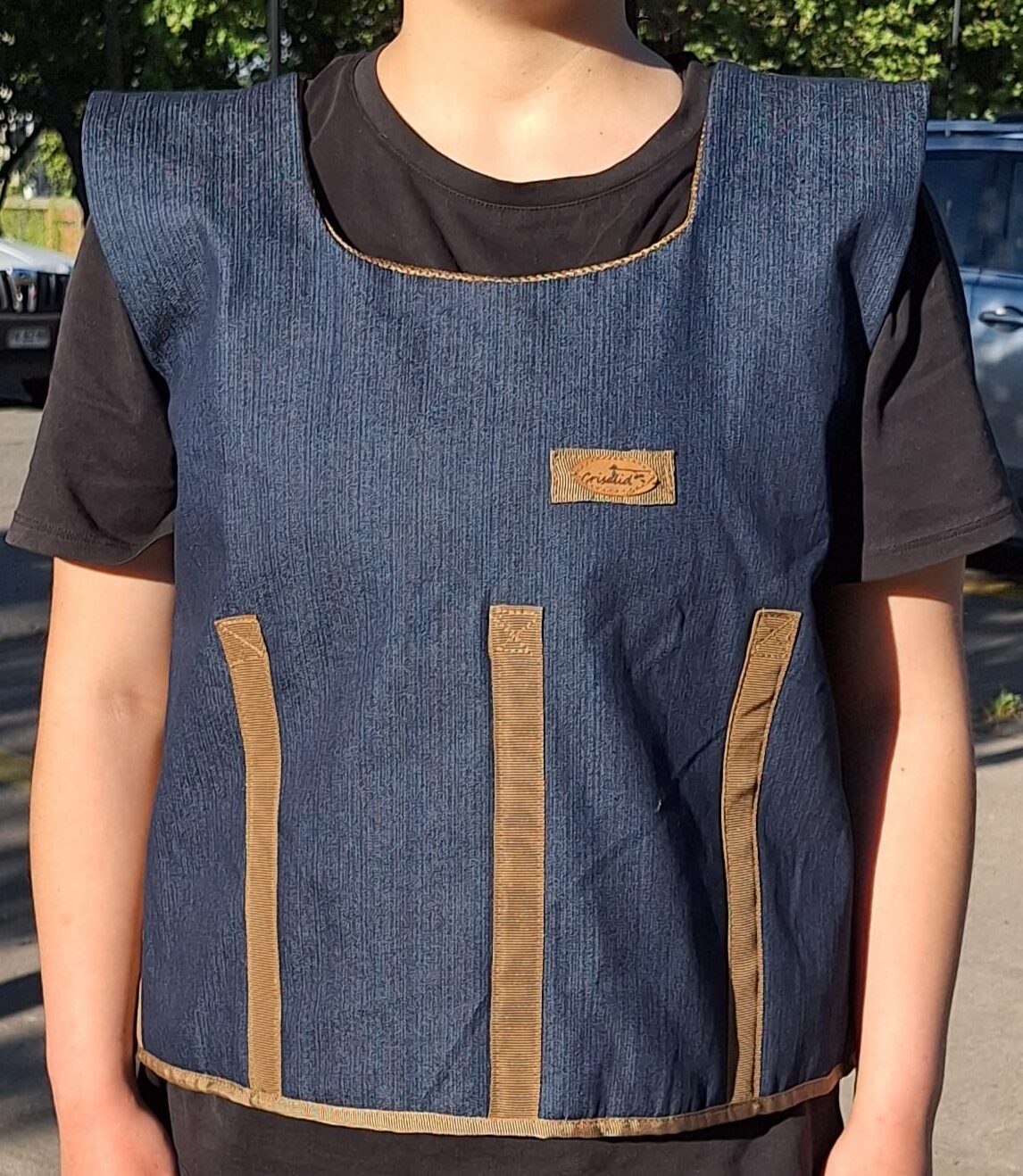 Confeccionado en tela jeans elasticada. Interior de tela sandwich anti sudor. Ajuste de tallas con velcro. Los pesos de relleno de cuarzo granulado. Fabricación a medida.