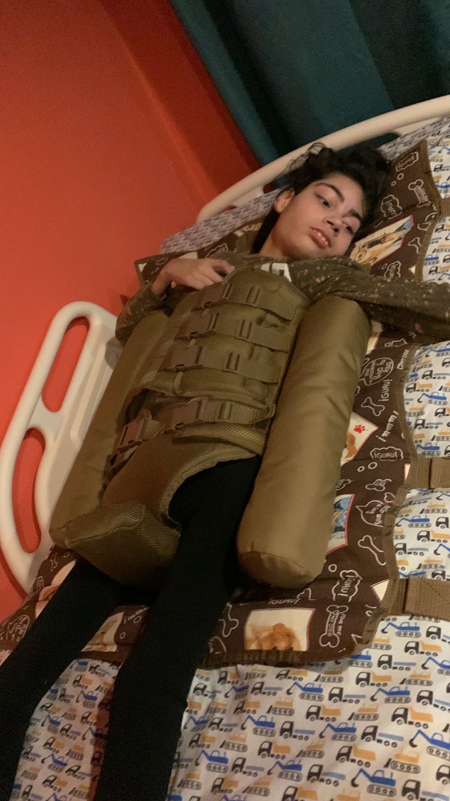 Permite posicionar adecuadamente al usuario evitando posturas poco favorables que puedan empeorar su condición, tales como rotación de cabeza, inclinación de tronco. Puede ajustarse a catre clínico o cama, y a silla neurológica. Incorpora sujeciones para las zonas torácica y pélvica.